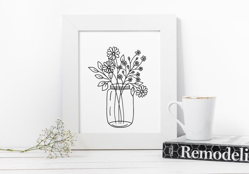 Etching drawing chrysanthemum aesthetic flower simple drawing hd. Red carnation flower in glass mason jar on wooden floor. The nice thing about this painting is that most of the top of the jar will be covered with flowers and leaves. A vase is a type of open container that has been used throughout human history. Drawing a mason jar is fairly simple!